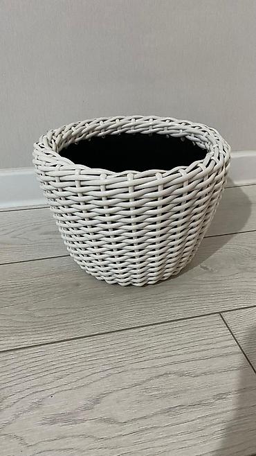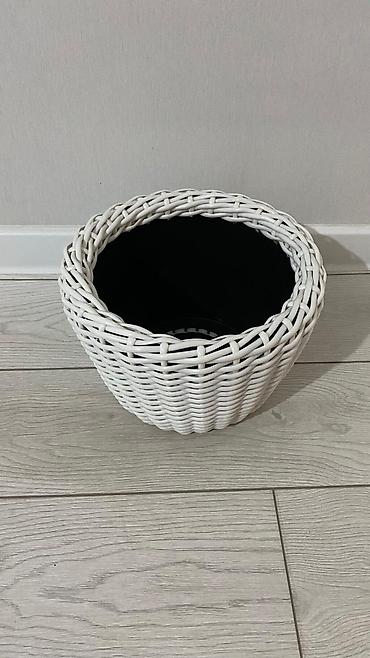 Кашпо плетёное, белое. - Материал: имитация ротанга/пластик, устойчив