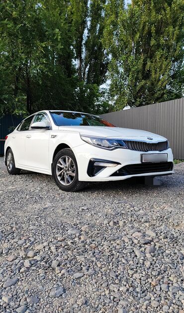 Kia к5 (рестайлинг), белый седан бизнес-класса. Кузов и экстерьер: - Фирменная решетка радиатора, узкие светодиодные фары и ДХО. - Вертикальные LED-противотуманки, парктроники спереди. - Панорамна...