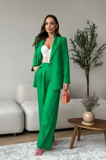 Нарядный брючный костюм пиджак брюки и Майка с паетками. Выход один