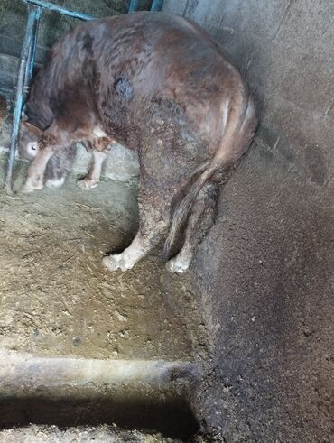 Бык чёрного окраса, рогатый, на привязи, содержится в отдельном стойле. Крупный, широкая спина и грудь, крепкий костяк, ровные конечности. Кожа и шерсть тёмные, плотные. Уши с бирками. Спокойный ха...