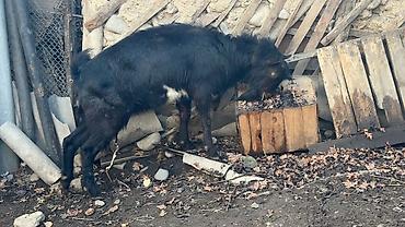 Племенной козёл с крупными рогами и мощным телосложением. Характеристики: - Порода: Англо-нубийский мясо-молочный тип (крупный, широкая грудь, развитая мускулатура) - Окрас: светло-бурый с тёмной ...