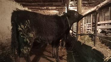 первотелка, рост 115см, в течении месяца должна оттелится - Масть темно-бурая, рогатый, на крепкой цепной привязи. - Содержится в стойле, кормление из кормушки (смесь грубых и сочных кормов). - Ра...