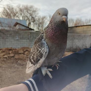 Голубь (домашний/спорт) серого окраса с блестящим зелёно‑фиолетовым