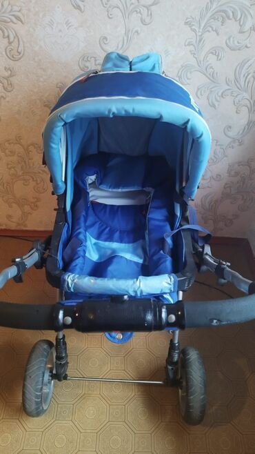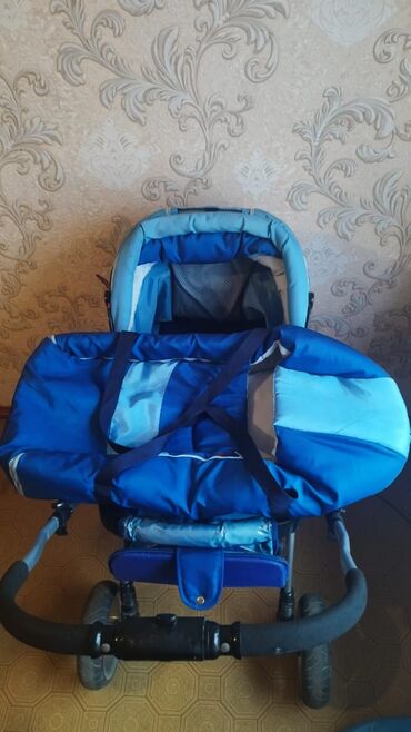 Цвет: синий с голубыми вставками. Подходит для прогулок в разное время года, удобно использовать как люльку для новорожденного и как прогулочный блок для подросшего ребенка.