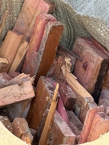 Дрова в мешках - Порубленные поленья и обрезки древесины, упакованы в прочные полипропиленовые мешки. - Размер фракции: в основном короткие поленья/рейки, удобные для розжига печей, каминов, манга...