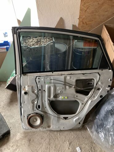 Подходит как донор или для восстановления. Размер и форма — типичная задняя правая дверь с рамкой стекла. Цвет: серебристый.