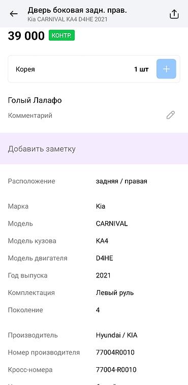 Дверь Задняя левая Kia
