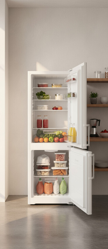 - Классическая компоновка: отдельные двери холодильного и морозильного отделений.