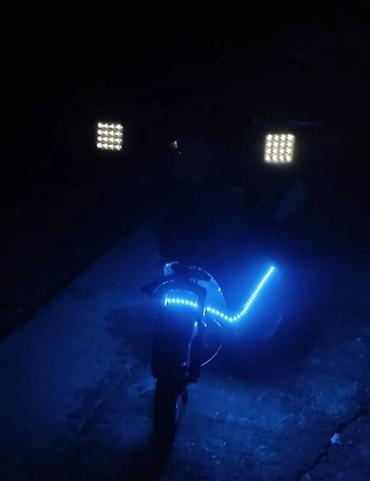 - Полный свет: светодиодная фара, поворотники, габариты; дополнительная декоративная LED‑подсветка по контуру (синяя) для видимости в темноте