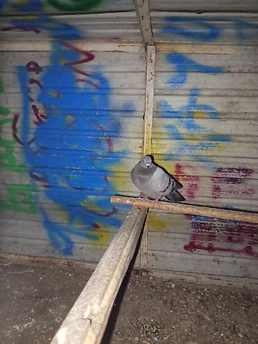 Голубь (домашний/спорт) серого окраса с блестящим зелёно‑фиолетовым отливом на шее. Классический рисунок обмен не интересует на карликовый петух