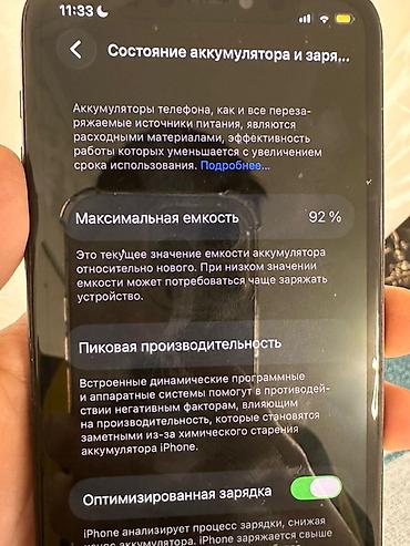 - Аккумулятор: максимальная ёмкость 92%, оптимизированная зарядка включена