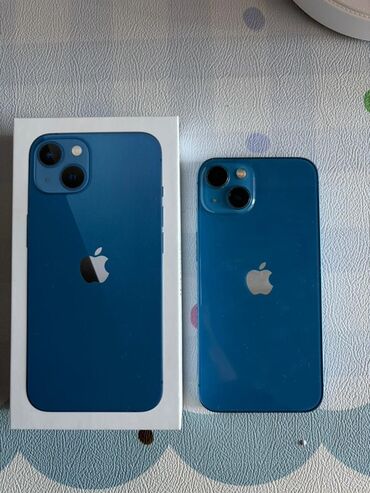 IPhone 13, цвет Blue (синий). Комплектация на фото: смартфон и фирменная коробка.