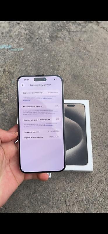 IPhone 15 Pro Max, Б/у, 256 ГБ, Natural Titanium, Кабель, Коробка, 88 %
