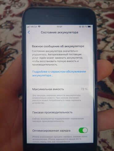 Состояние аккумулятора по системе: максимальная емкость 73%, поддерживается нормальная пиковая производительность; включена «Оптимизированная зарядка».