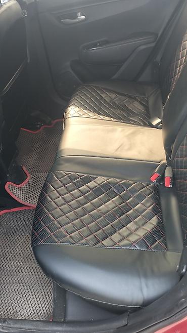 - Задний диван с чехлами из экокожи с ромбовидной прострочкой (черные с красной нитью)