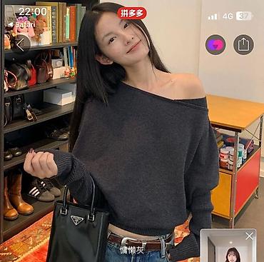 Женский вязаный свитер с открытыми плечами - Цвет: меланжевый серый - Фасон: широкий воротник-«хомут», который можно спускать на плечи; свободный силуэт - Дизайн: выраженная вертикальная и горизон...