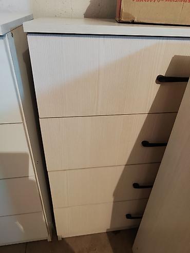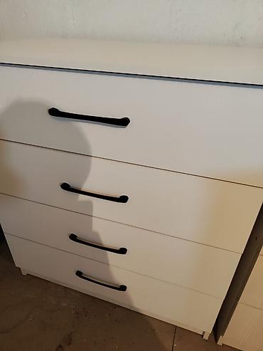 Белый комод с 4 выдвижными ящиками. (IKEA). Качество жакшы. Год пользовались (новорожденныйга) 1,2 минус бар но карап койсо болот нижняя полкада, - Лаконичный современный дизайн без ручек: фаса...
