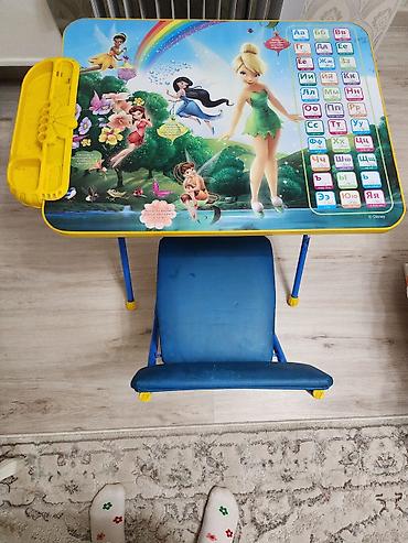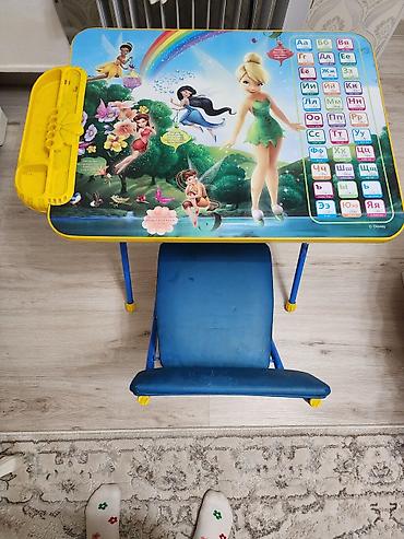 Железный почти новое, хорошее состояние Детский комплект для занятий и творчества: складной столик со стулом.