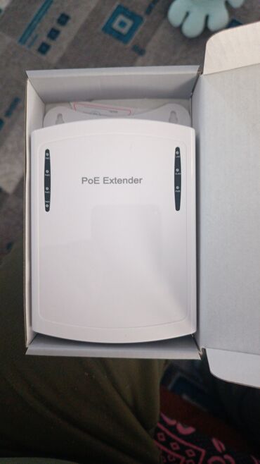 - Комплект для удлинения линии PoE/Ethernet. Белый настенный PoE Extender с индикацией (LAN, VLAN, PWR, PoE1–PoE3) и 4 портами RJ‑45 на выход, а также компактный черный PoE Repeater с цепочкой из двух портов PoE и одним портом uplink.