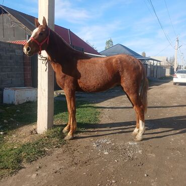 Кунан сатылат 145000 Гнедая верховая лошадь с белыми чулками на ногах. На фото — под всадником в рабочей упряжи: кожаное седло, вальтрап, уздечка с трензелем и поводьями. Корпус сухой, мускулистый,...