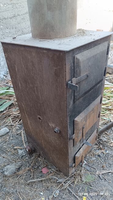 Металлическая печь-буржуйка с варочной поверхностью Описание: - Компактная прямоугольная печь из стали на ножках, с верхним варочным кругом (съемное кольцо-конфорка для кастрюль/чайников). - Две ф...