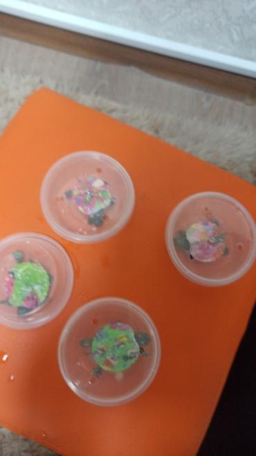 - Внутри — миниатюрная черепашка-игрушка с ярким разноцветным панцирем (разные расцветки)
