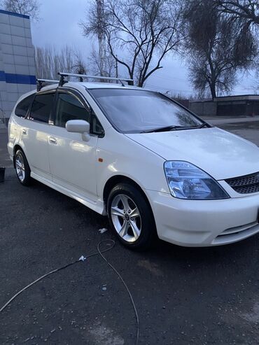 Honda Stream (правый руль), белый минивэн 5‑дверный.