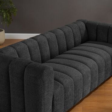 - Дизайн: глубокая посадка, объемные вертикальные прострочки/каналы по сиденью и спинке, широкие подлокотники. Актуальная минималистичная геометрия.