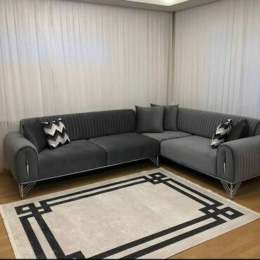 Угловой модульный диван в современном стиле - Форма: П-образная/Г-образная композиция из нескольких модулей, подходит для просторной гостиной или студии. - Обивка: бархатистая велюровая ткань насы...