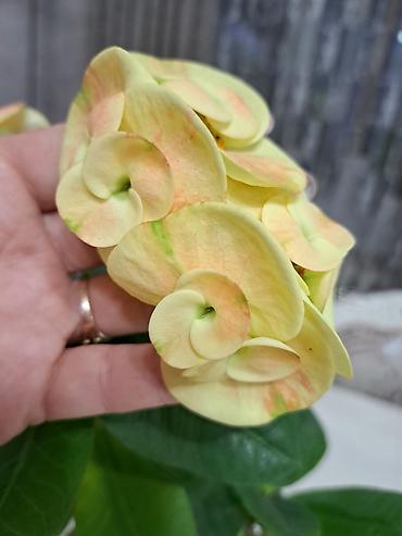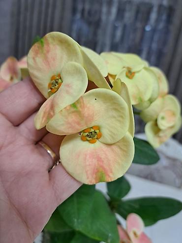 Эуфорбия миля (Euphorbia milii) в пластиковом горшке. - Эффектные соцветия с розово‑мраморными прицветниками и жёлтой серединкой, цветение «волнами» большую часть года. - Компактный куст с плотным...