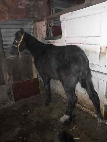 Молодой осёл (жеребёнок-ослик) тёмной масти. Характеристики: - Масть: тёмно‑коричневая/чёрная, густая шерсть - Возраст: молодой (по комплекции — ещё растёт) - Амуниция: красный недоуздок с привязь...1 000 KGS
