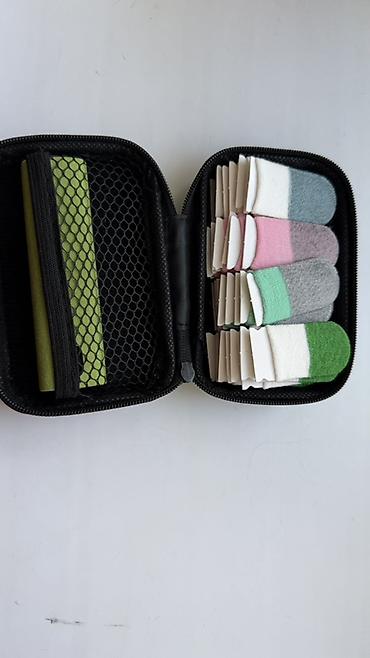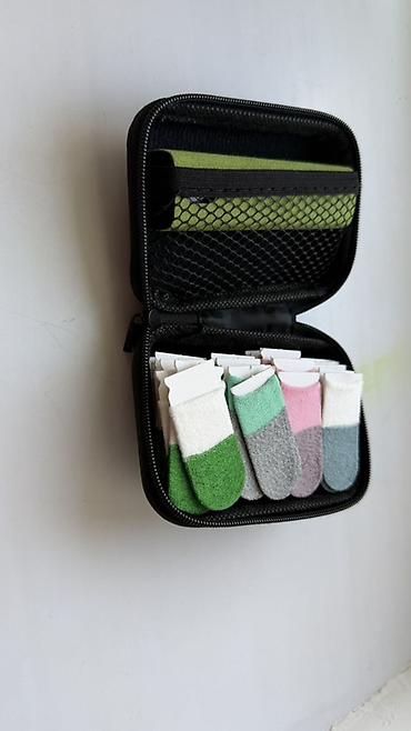 - Комплект мягких тканевых напальчников (несколько десятков штук) разных цветов: зелёный/белый, серый/зелёный, розовый/серый, голубой/белый и др.
