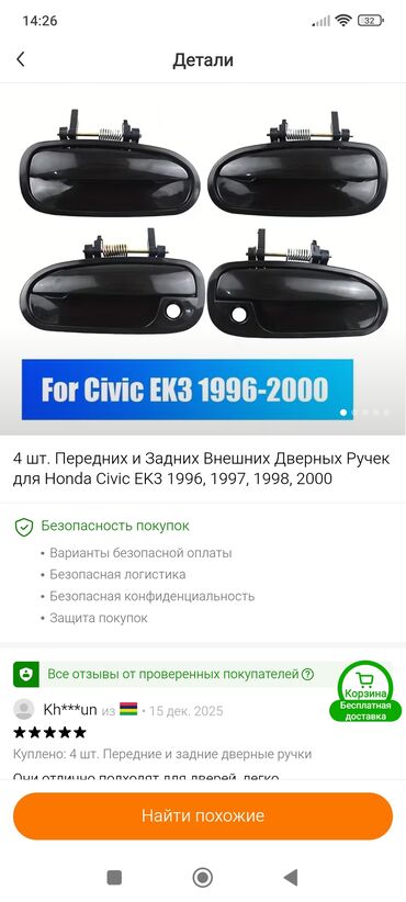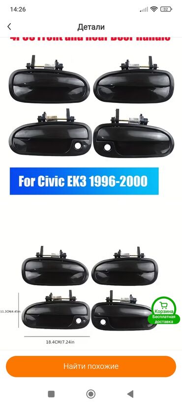 Комплект наружных дверных ручек для Honda Civic EK3 (1996–2000)