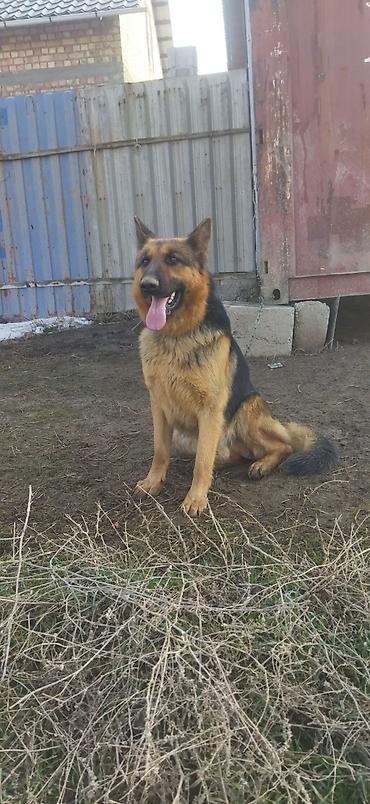 Немецкая овчарка, кобель. Классический окрас чепрачный: насыщенная рыже-черная шерсть, плотный подшерсток, мощный корпус, крепкая голова и прямые уши. Уравновешенный темперамент, внимательный взгляд, выраженный охранный инстинкт. Подойдет как компаньон для семьи и как сторож для частного дома/двора. Контактный, ориентирован на человека, легко обучается базовым командам. Крупный, с хорошей мускулатурой и широкой грудью. Требуется регулярный выгул, активные нагрузки и уход за шерстью (вычесывание). Отличный вариант для тех, кто ищет надежную, преданную и умную служебную собаку.