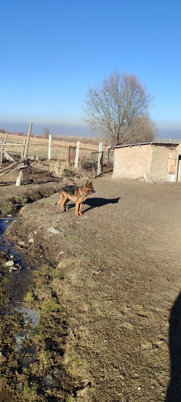 Немецкая овчарка, кабель. Классический чепрачный окрас: спина и круп — черные, грудь, лапы и бок — насыщенно-рыжие. Крепкий костяк, мощная шея, выразительная голова, стоячие уши. Активный, внимательный, контактный; хорошо реагирует на команды хозяина, ориентирован на человека. Отлично подходит для охраны двора и участка, быстро переключается между рабочим режимом и игрой. Уравновешенный темперамент, любит прогулки и бег. На фото видно сильную мускулатуру, правильную постановку конечностей и густую двухслойную шерсть, удобную для содержания на улице.