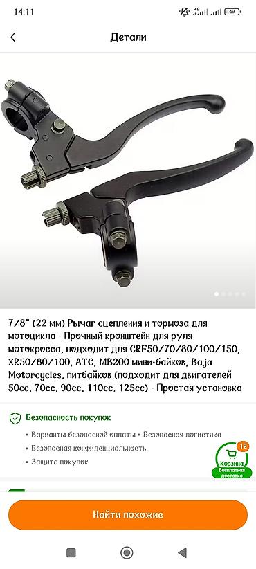 Рычаги сцепления и тормоза для мотоцикла (пара) — для руля 7/8" (22 мм), цена за пару. Новые ,не подошли нам. Сокулук