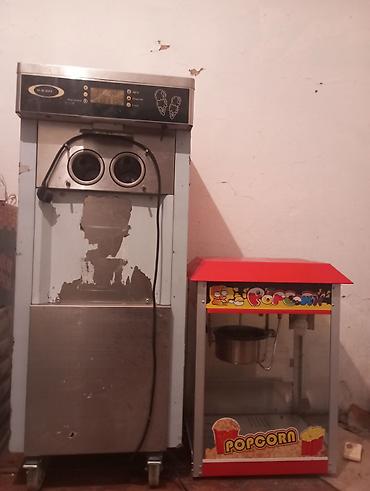 Оборудование для торговли сладостями: фризер для мягкого мороженого и попкорн-машина.