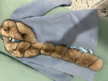 Элегантное женское пальто из плотного материала светло-голубого цвета, с объемным воротником из натурального меха песца который придает изделию роскошный вид. Пальто с прорезными карманами по бокам. Подкладка выполнена из стеганой ткани в тон основному цвету. Пальто подойдет для создания стильного образа в прохладную погоду.