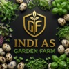 Бренд: INDI AS Garden Farm. Логотип с листом в эмблеме подтверждает направление на садово-фермерские продукты и микрозелень.
