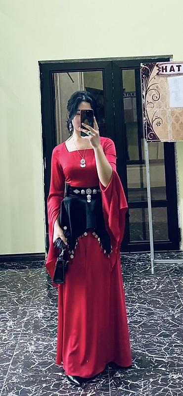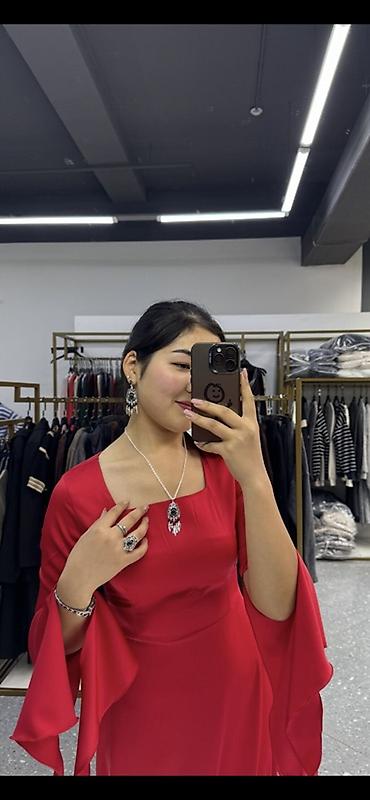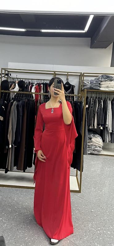 - Длинное вечернее платье насыщенного красного цвета.
