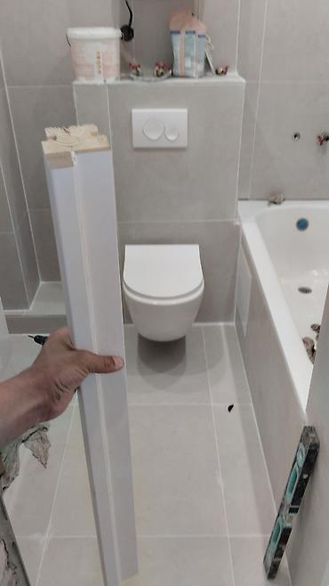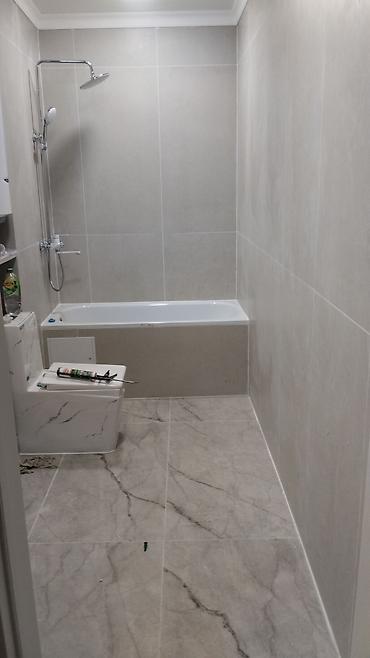 - Ванные комнаты и санузлы: облицовка стен и пола, монтаж ванны, инсталляции унитаза, выведение ниш и экранов, затирка швов.