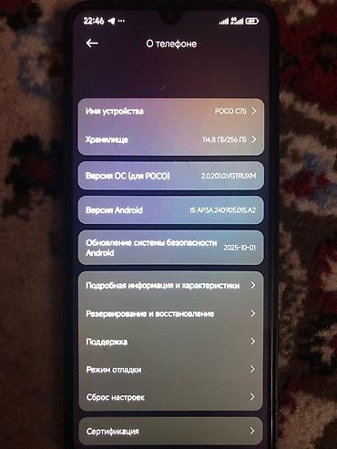 POCO C75 — смартфон на Android 15 (сборка для POCO 2.0.201.0 VGTRUXM) с большим экраном и каплевидным вырезом под фронтальную камеру.