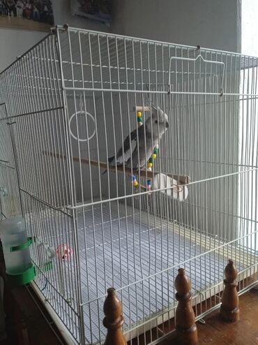 Продаю попугая корелла редкого цвета (черно-белый) с просторной клеткой, 76 на 45 см, с деревянной палочкой, лесенкой, поилкой, кормушкой и сеткой от перьев. Попугай молодой, около 8 месяцев, к рук...