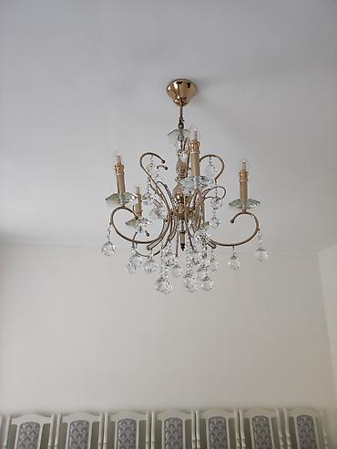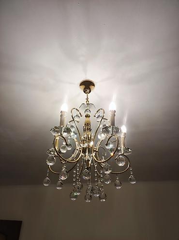 Продаётся люстра. Красивая классическая люстра с хрустальными подвесками. Металлический корпус, элегантный дизайн, хорошо смотрится в зале, гостиной или спальне. Состояние отличное, б/у, без дефект...