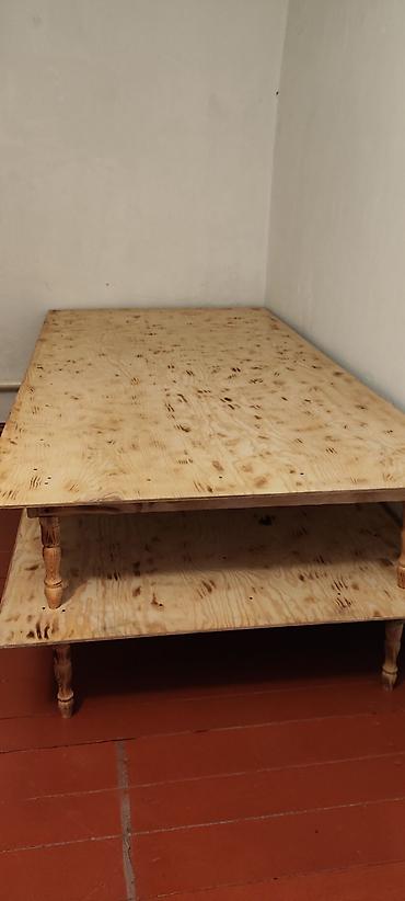 Прямоугольный стол (2 стола, цена за 2 -12000сом) светло-бежевого цвета с массивными деревянными ножками. Столешница, выполненная из светлого дерева, имеет прямоугольную форму и достаточно большую ...