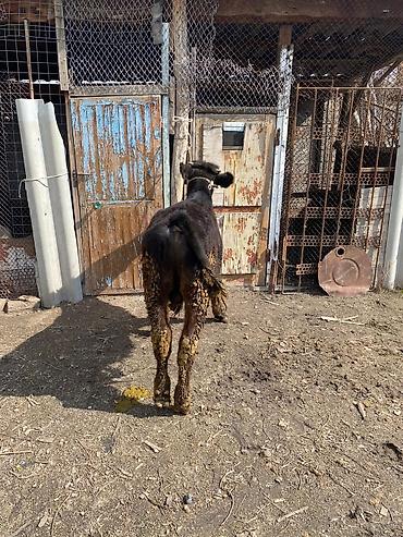 - Масть: тёмно‑буро‑рыжая. - Возраст на фото: молодняк, сформированный корпус, крепкие конечности. - Уши с индивидуальными жёлтыми бирками (KG ) — упрощает учёт и ветеринарный контроль. - Носовой...