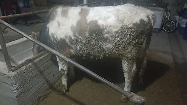 Карова чёрного окраса. - Молодое животное, компактное телосложение, короткая блестящая шерсть. - Небольшие рога, крепкая конституция, широкая грудь. - Содержится в стойле, кормление сеном и зелёно...