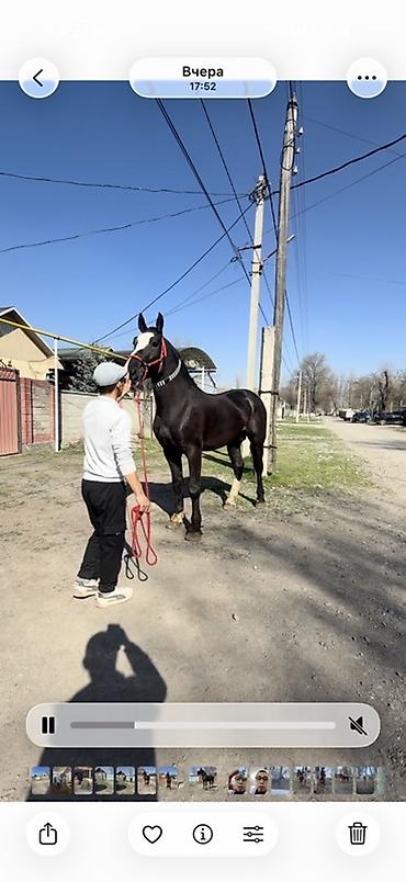 Продается чистокровный жеребец Возраст : 5 лет Отец : Родник Мать : Слава Цена : 200 000 сом