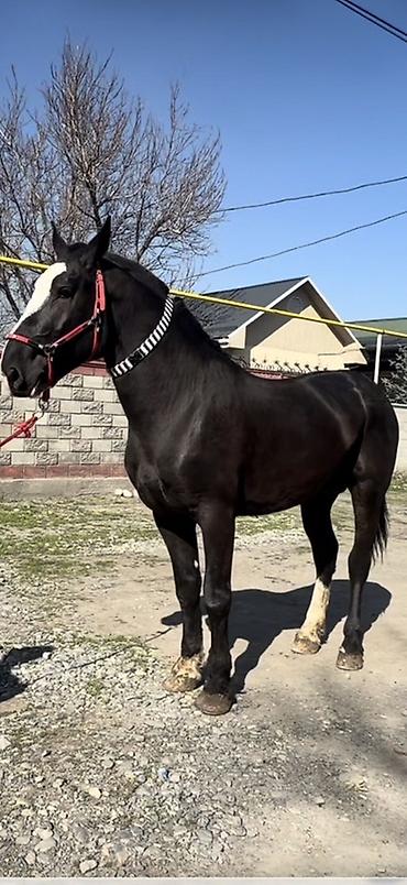 Айгыр (жеребец), верховой тип. Основные характеристики: - Возраст: 3 асый - Рост в холке: 160+ см - Порода/масть: кара байыр - Поведение: работоспособный, управляемый, реагирует на поводы и голос ...