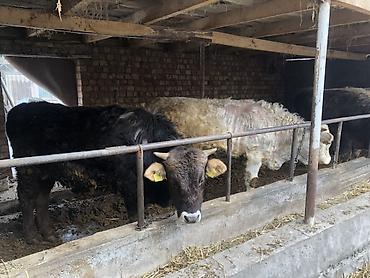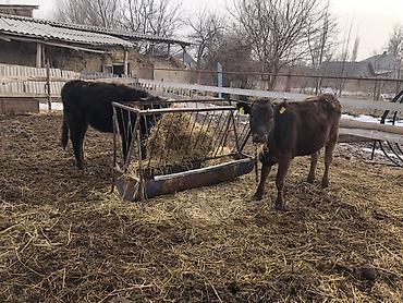 - Фото сделаны на месте: коровы с телёнком на выгуле, бычки в стойле и у кормушки.